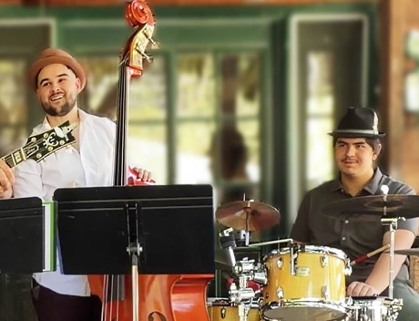 Bassist Dru Mahoney, winner of the Allstate Oregon Jazz Bass championship in 2022, and drummer Nate Winner have played together in a range of bands for over a decade, including a performance at the Oregon Shakespeare Festival's Green Show. In addition to Band du Pays swing, they play with the Rogue Jazz Syndicate.