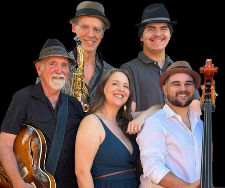 Band du Pays Swing is a five piece Ashland, Oregon-based swing band featuring playful, danceable renditions of jazz classics from the 1920s through the 1980s an East Coast Swing style, as well as some contemporary tunes we’ve adapted for swing. We’re fronted by the wonderfully skillful vocalist Kaitie Warner, and feature Oregon AllState Bass Champion Dru Mahoney on bass, Craig Martin on guitar and vocals, Stephen Gagné on sax and clarinet, and Nate Winner on drums.